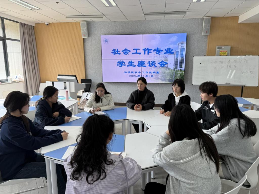 为深入了解社会工作专业学生需求,提升教学管理服务效能,2025年11月5日,社会工作专业在行知楼4066教室组织召开2025-2026学年第1学期期中学生座谈会。座谈会由社会工作教研室主任毛慧琼主持,专业课教师毕亚斐、杜洁及各年级学生代表共同参与。