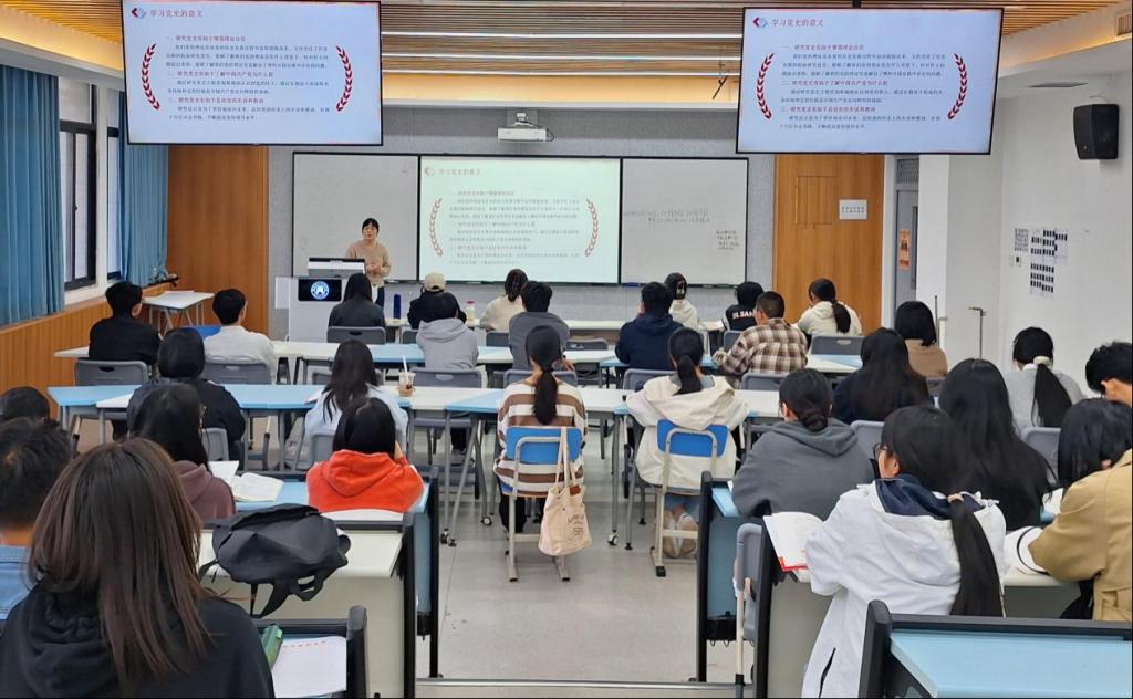为进一步加强入党积极分子的党性修养、筑牢思想根基,10月14日,法学院学生第三党支部书记周雪娅在弘毅楼3214C教室为2025年秋期入党积极分子讲授《党的历史和优良传统、作风教育以及社会主义核心价值观教育》专题党课。